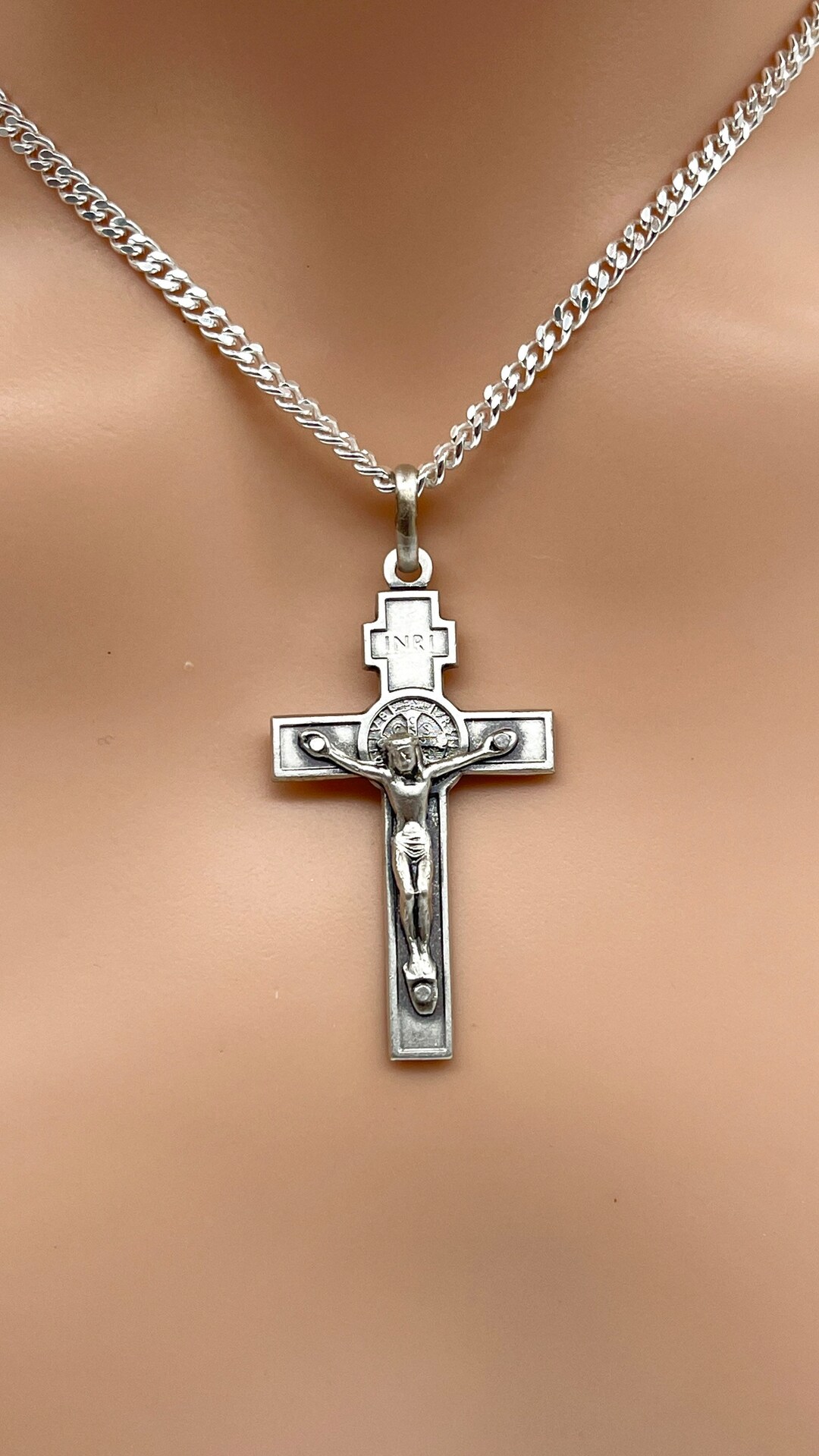 Colgante De Cruz De San Benito De Plata De Ley 925, Colgante De Medalla Religiosa Para Collar, Joyería De 28mm - AliExprs